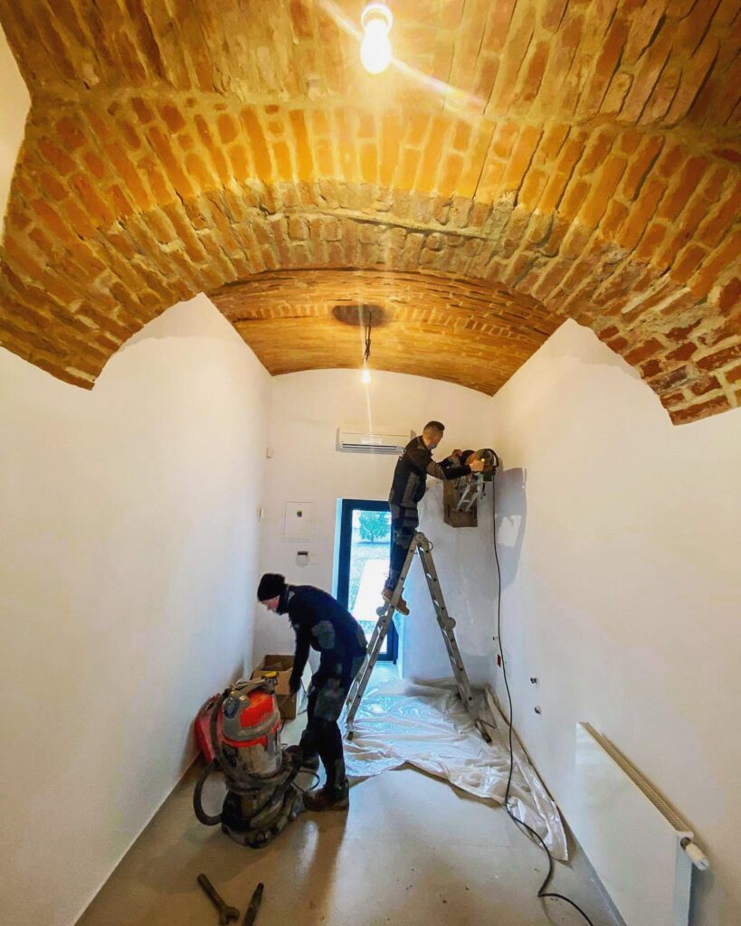 Profesionálním nářadím tvoříme drážky ve zdi pro přívod elektrického proudu od nejbližší zásuvky. Jednotky je na vyžádání možné zapojit i přímo do zásuvky.